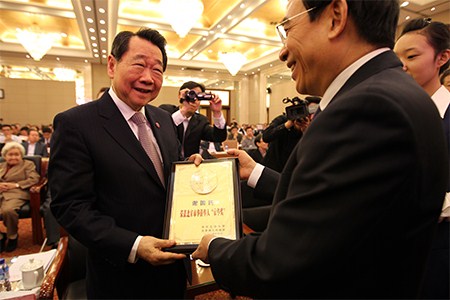 為表彰在首都經(jīng)濟(jì)社會(huì)發(fā)展中做出突出貢獻(xiàn)的華僑華人、歸僑僑眷和港澳同胞,北京市人民政府辦公廳自2013年開展了首屆“京華獎(jiǎng)”評(píng)選工作。作為華人華僑的杰出代表、中國僑商投資企業(yè)協(xié)會(huì)會(huì)長(zhǎng),謝國民董事長(zhǎng)被評(píng)為“京華獎(jiǎng)”獲獎(jiǎng)?wù)摺?br /> 2014年5月8日上午,“京華獎(jiǎng)”頒獎(jiǎng)大會(huì)在北京會(huì)議中心召開, 北京市委副書記、市長(zhǎng)王安順,國務(wù)院僑辦主任裘援平等政府領(lǐng)導(dǎo)出席會(huì)議并為謝國民董事長(zhǎng)頒發(fā)了獎(jiǎng)牌和證書。同時(shí)獲得“京華獎(jiǎng)”的還有香港富華國際集團(tuán)董事長(zhǎng)陳麗華、作家嚴(yán)歌苓等共10位華人華僑。 正大集團(tuán)在中國總投資超150億美元,下屬企業(yè)近300家,遍及除西藏、青海以外的所有省份,吸納就業(yè)超過10萬人,并先后捐資5億多元人民幣用于中國社會(huì)的公益事業(yè)。 正大集團(tuán)在北京投資約160億元,吸納就業(yè)1.8萬余人,有卜蜂蓮花連鎖超市、正大飼料、正大家禽育種、正大蛋業(yè)、正大制藥、正大僑商房地產(chǎn)公司等20多家企業(yè),并將農(nóng)牧食品企業(yè)中國區(qū)總部、制藥企業(yè)中國區(qū)總部設(shè)于北京。2008年至2013年,正大集團(tuán)在北京地區(qū)納稅30多億元。 近幾年來,正大集團(tuán)在京投資有兩個(gè)重點(diǎn)項(xiàng)目:一是平谷300萬只蛋雞項(xiàng)目,投資7億多元人民幣,覆蓋近2000家農(nóng)戶6000余人;二是CBD世界華商中心(正大集團(tuán)牽頭建設(shè))、CBD正大集團(tuán)總部項(xiàng)目,投資約68億元人民幣,占項(xiàng)目總投資的70%以上。